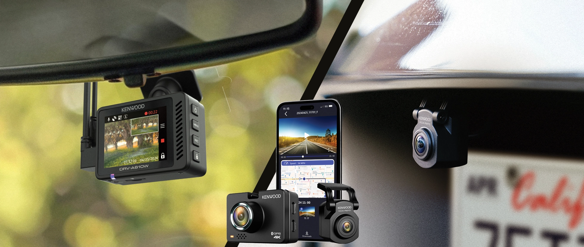 Verbinden Sie die wasserdichte 2K QUAD HD Rücksichtkamera KCA-R210 mit der DRV-A610W Dashcam als Teil eines Zweikanalsystems mit hoher Videoauflösung und sorgen Sie so für zusätzliche Abdeckung, wo immer Sie es wünschen.